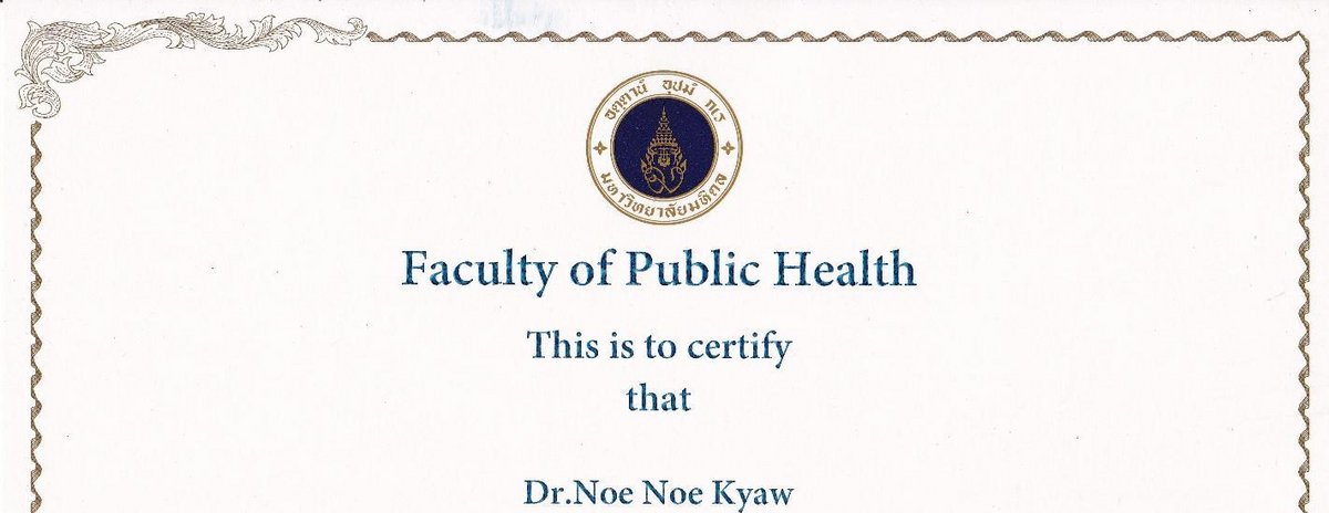 Im Juli 2017 hat Frau Dr. Noe Noe Kyaw erfolgreich das Public-Health-Programm an der Mahidol-Universität abgeschlossen. Das Aufbaustudium wurde durch ein Stipendium der Bettina-Kattermann-Stiftung ermöglicht.