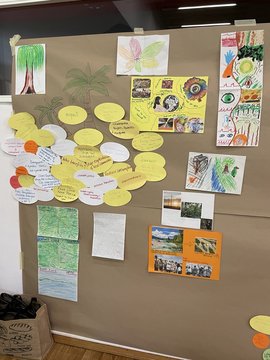 Währenddessen entließ Christine-Joahn Meier die zweite Gruppe mit zwei Fragen in die Natur: Was kann die Natur mir geben und was gebe ich der Natur? Die Erfahrungen auf der Naturreise hielten die Teilnehmenden im Anschluss in Bildern, Gedichten und Texten fest. Deutlich wurde, dass die Natur nicht nur für Erholung, sondern insbesondere in den sturmgebeutelten Philippinen auch Gefahr bedeutet (Foto: philippinenbüro).
