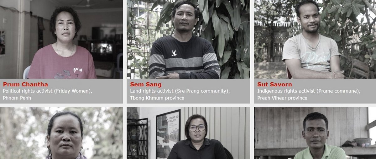 Die Erfahrungen der sechs Menschenrechtsverteidiger:innen werden kurz vorgestellt. Alle kämpfen trotz großer Widrigkeiten und Widerstände weiter für die Rechte aller Kambodschaner:innen.