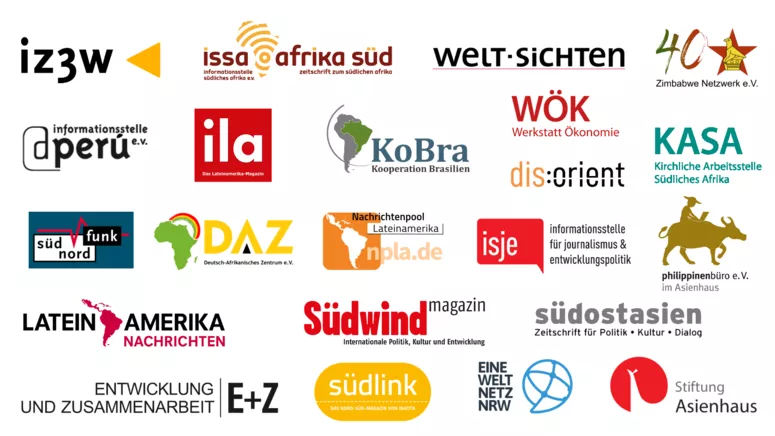 In Kooperation mit: Deutsch-Afrikanisches Zentrum e.V. | dis:orient e.V. | Eine Welt Netzwerk NRW | E+Z – Entwicklung und Zusammenarbeit | ila – Informationsstelle Lateinamerika (Bonn) | informationsstelle Peru (Freiburg) | WÖK - Werkstatt Ökonomie e.V. & Kirchliche Arbeitsstelle Südliches Afrika KASA (Heidelberg) | ISJE-Informationsstelle für Journalismus und Entwicklungspolitik (Wien) | KoBra – Kooperation Brasilien e.V. (Freiburg) | Lateinamerika Nachrichten | Nachrichtenpool Lateinamerika (NPLA) | südlink - das Nord-Süd-Magazin von INKOTA | südostasien - das Online-Magazin von Stiftung Asienhaus und philippinenbüro e.V (Köln) | Südwind-Magazin (Wien)