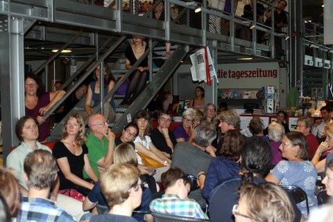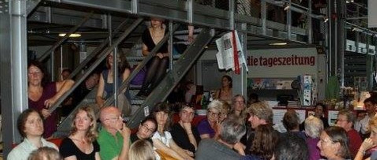 „Der Aufbruch in Myanmar“ war eine packende, informative und abwechslungsreiche Veranstaltung zur Vorstellung des „Handbuch Myanmar“. Selten war das Café der legendären taz-Zeitung so überfüllt wie an diesem Abend. Trotz Sommerhitze waren rund 80 Menschen im Raum, viele saßen auf den Treppenstufen, der Balustrade, und sogar in der Eingangstür.