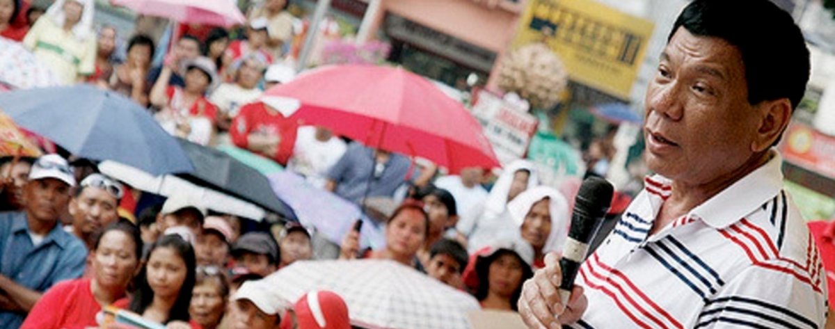 "Vergesst Gesetze und Menschenrechte", rief er auf seiner Abschlusskundgebung am Samstag den Menschen zu - und kündigte an innerhalb von sechs Monaten Kriminalität und Drogenhandel in den Philippinen ausmerzen zu wollen und dabei auch auf außergerichtliche Hinrichtungen zurückzugreifen - mit 100.000 Kriminellen soll kurzer Prozess gemacht werden.