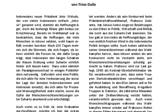 Hintergrundinformationen: Indonesien - 100 Tage Ernüchterung