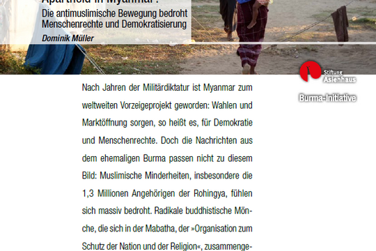 Im neuesten Papier der Burma-Initiative informiert Dominik Müller über die Situation der Rohingya, die antimuslimische Bewegung Mabatha und die…