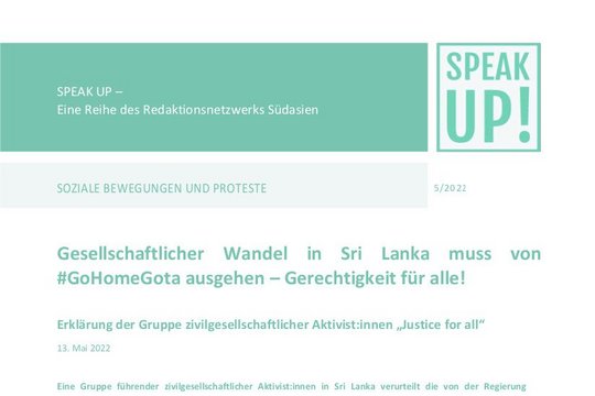 Speak Up! ist ein Medienprojekt des Redaktionsnetzwerks Südasien, das von Sept. 2021 bis Juni 2022 in Kooperation zwischen der Stiftung Asienhaus und dem Südasienbüro durchgeführt wurde. Es will Stimmen der kritischen Zivilgesellschaften und den Perspektiven von emanzipatorischen sozialen Bewegungen aus der Region ein Forum bieten und einen Dialog über aktuelle politische Themen organisieren. Jetzt wird Speak Up! als unabhängiges Redaktionsnetzwerk auf Globe-spotting.de fortgeführt.