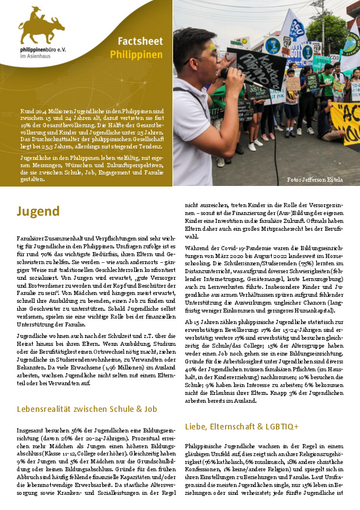 In den Jahren der Covid-19-Pandemie hatte insbesondere die junge Generation in den Philippinen - und nicht nur dort - unter den gravierenden Auswirkungen und einschneidenden Einschränkungen für Familie, Schule, Freund:innen zu leiden. Die Pandmie und die damit einhergehenden Maßnahmen nahmen zudem Einfluss auf die Entwicklung persönlicher Lebensperspektiven und der Verwirklichung von Menschenrechten.